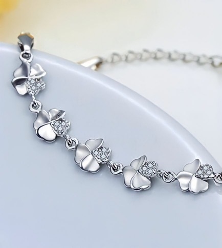 Sé el centro de atención con nuestra Pulsera de Trébol de Plata S925, un símbolo de buena suerte y elegancia.